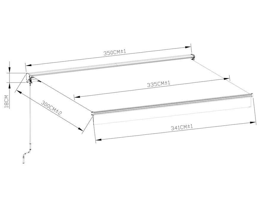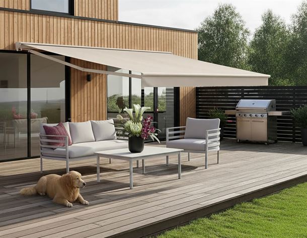 • Semi-kassette, der beskytter stoffet, når markisen er rullet ind