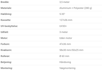 • Manuel betjening, så du nemt kan justere skyggen efter behov