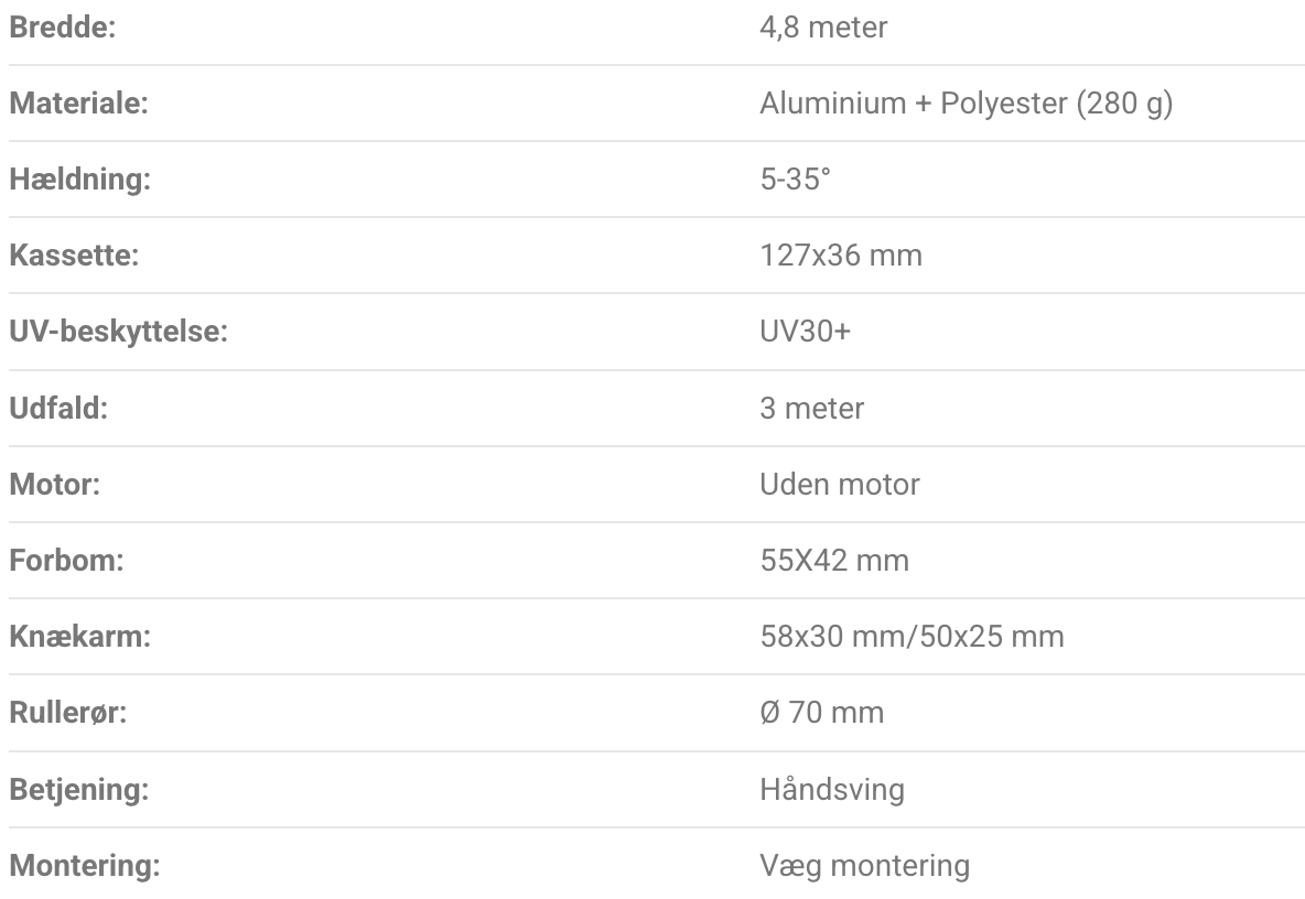 • Manuel betjening, så du hurtigt kan justere skyggen efter behov