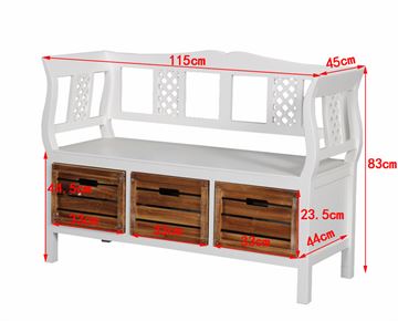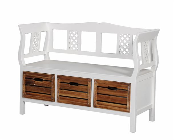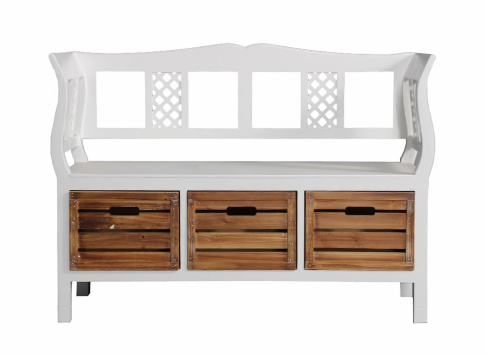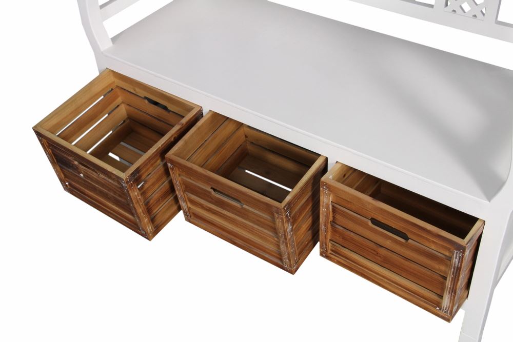 Løft entréen med en charmerende opbevaringsbænk i klassisk, hvidmalet træ.