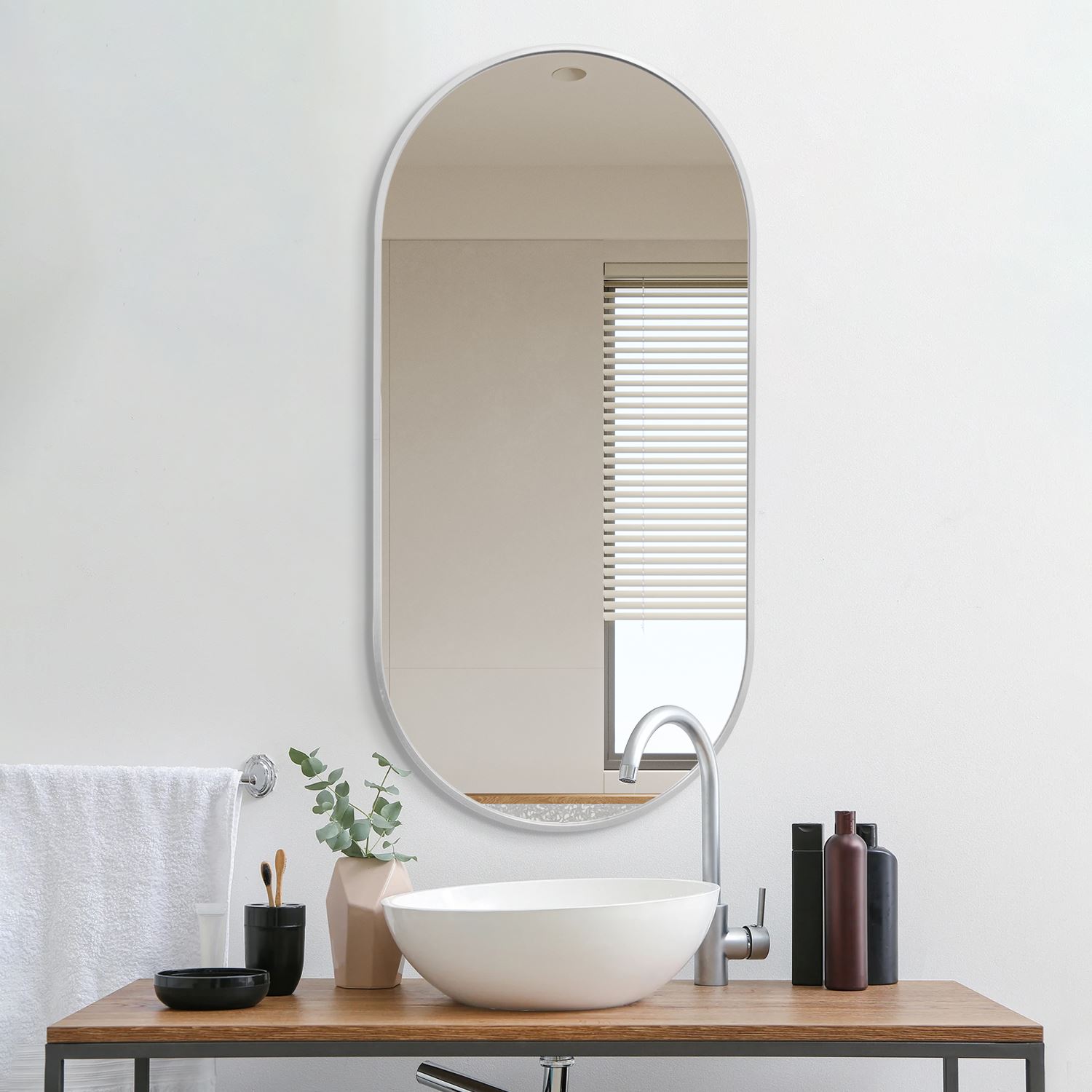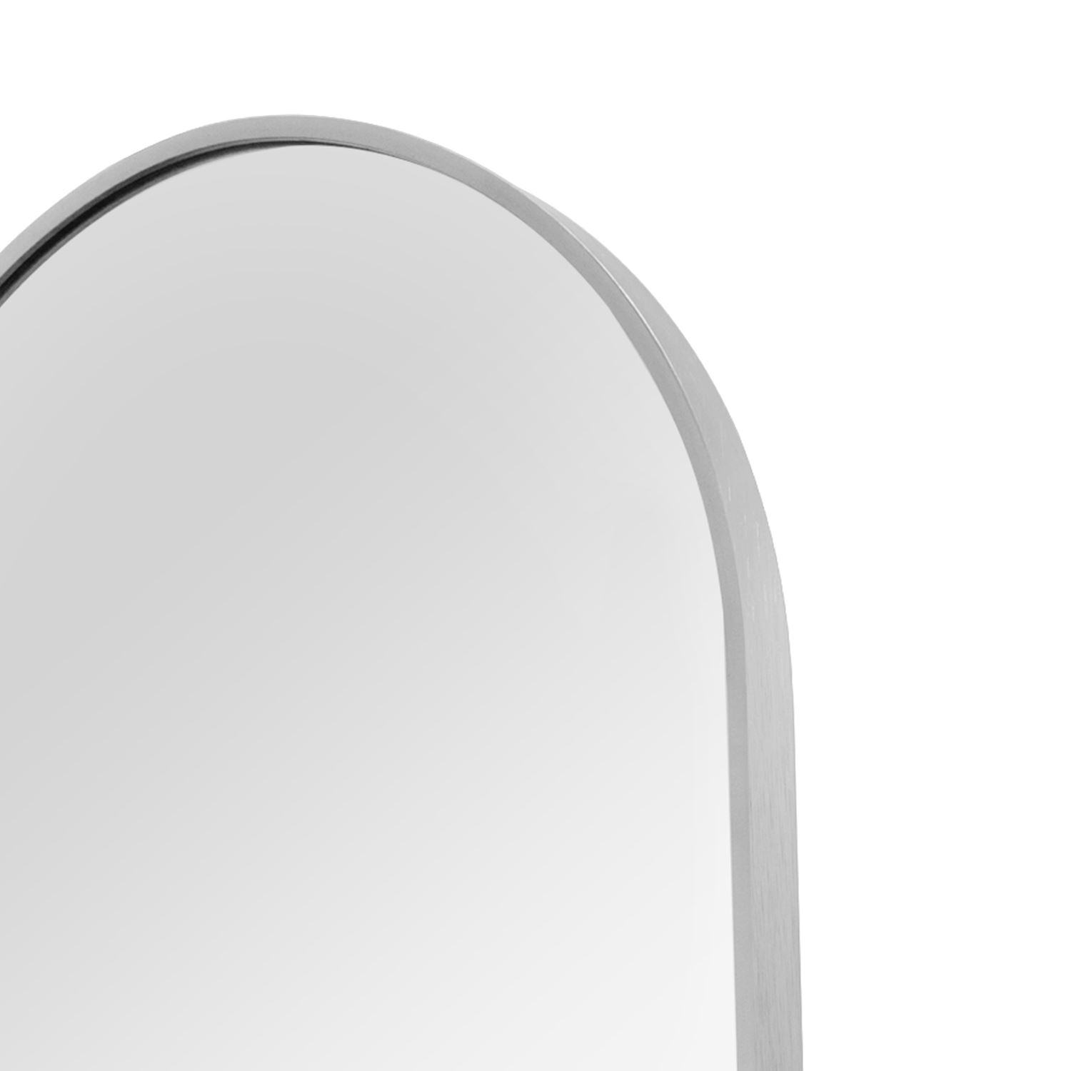 Det ovale spejl med ramme i børstet aluminium giver et let og moderne udtryk, der passer perfekt ind i både entre, stue og soveværelse. Den slanke alu-ramme indrammer spejlet uden at virke tung, så rummet opleves større, lysere og mere indbydende.