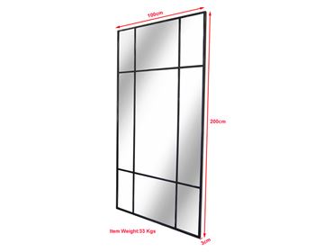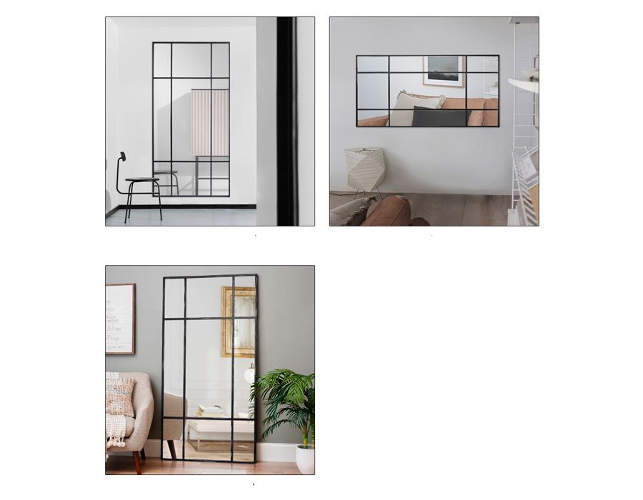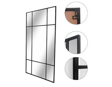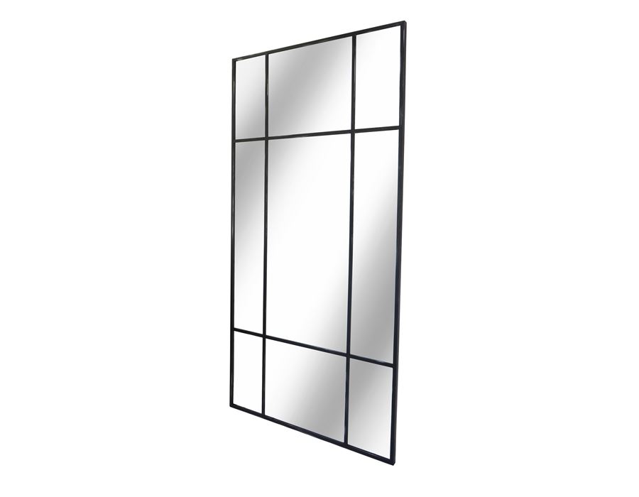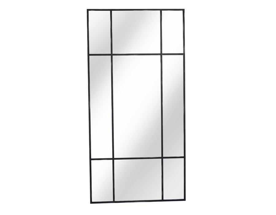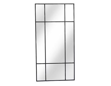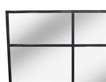 Giv hjemmet et markant, atelierinspireret udtryk med dette store vægspejl i antiksort jern. Den slanke ramme og den grafiske inddeling i felter skaber dybde og struktur, mens den generøse spejlflade reflekterer lys og får rummet til at virke større. Spejlet kan bruges fleksibelt—stil det afslappet på gulvet, eller hæng det op vandret eller lodret alt efter plads og stil. Se foto for alle mål.