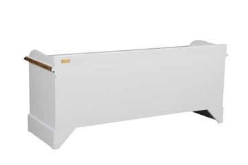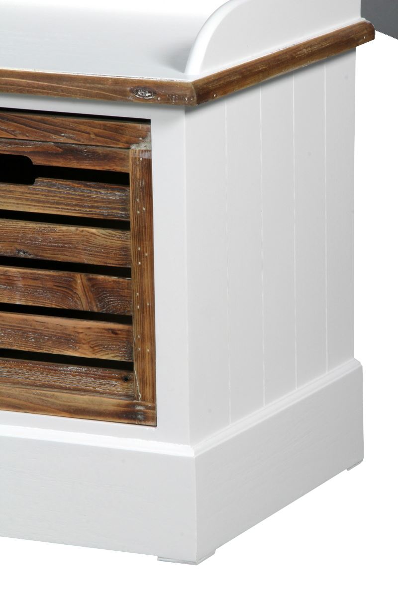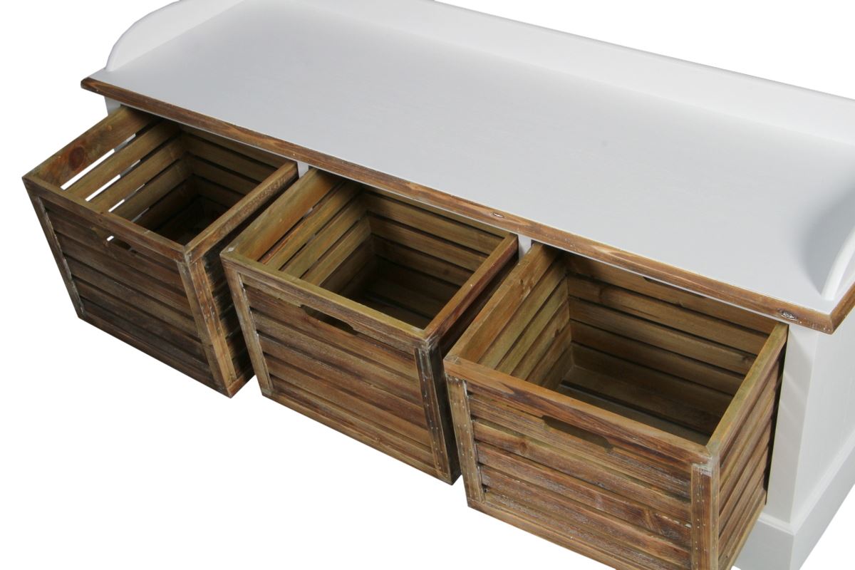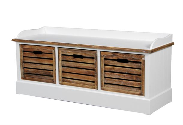 Gør entréen indbydende og ryddelig med denne smukke bænk med opbevaring. Den hvide, helmalede bænk giver et lyst og roligt udtryk, mens de tre skuffer i naturtræ tilfører varme og masser af hygge. De lamel-lookede fronter og indfræsede greb giver møblet et let præg.
