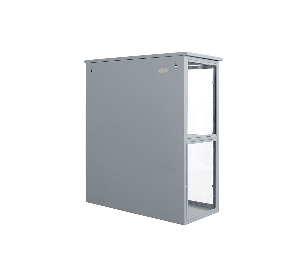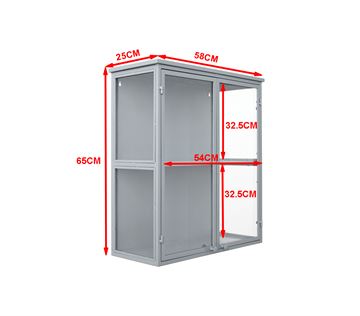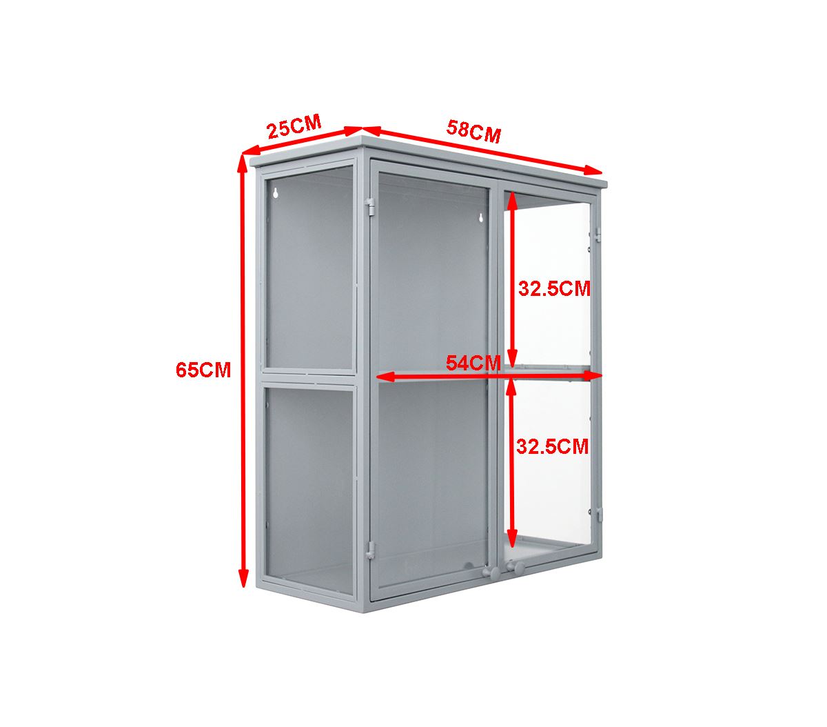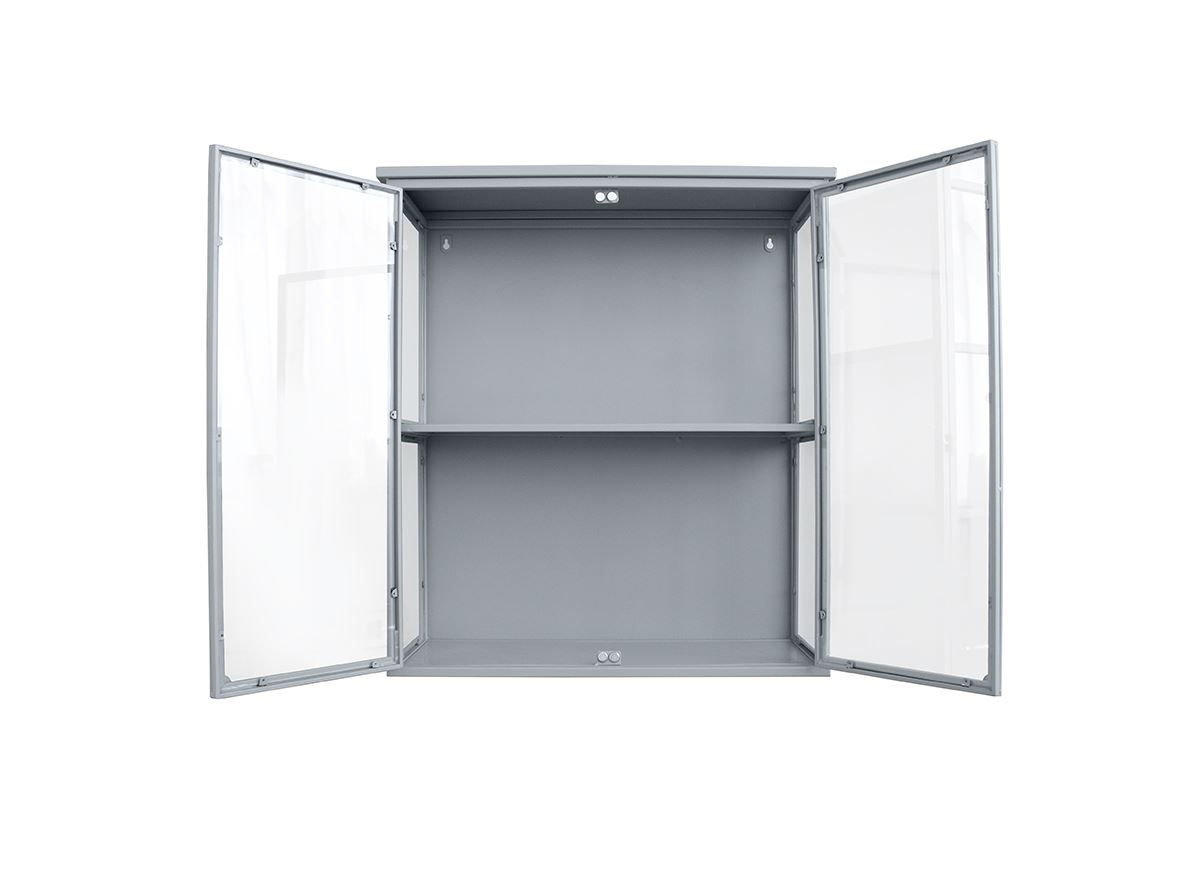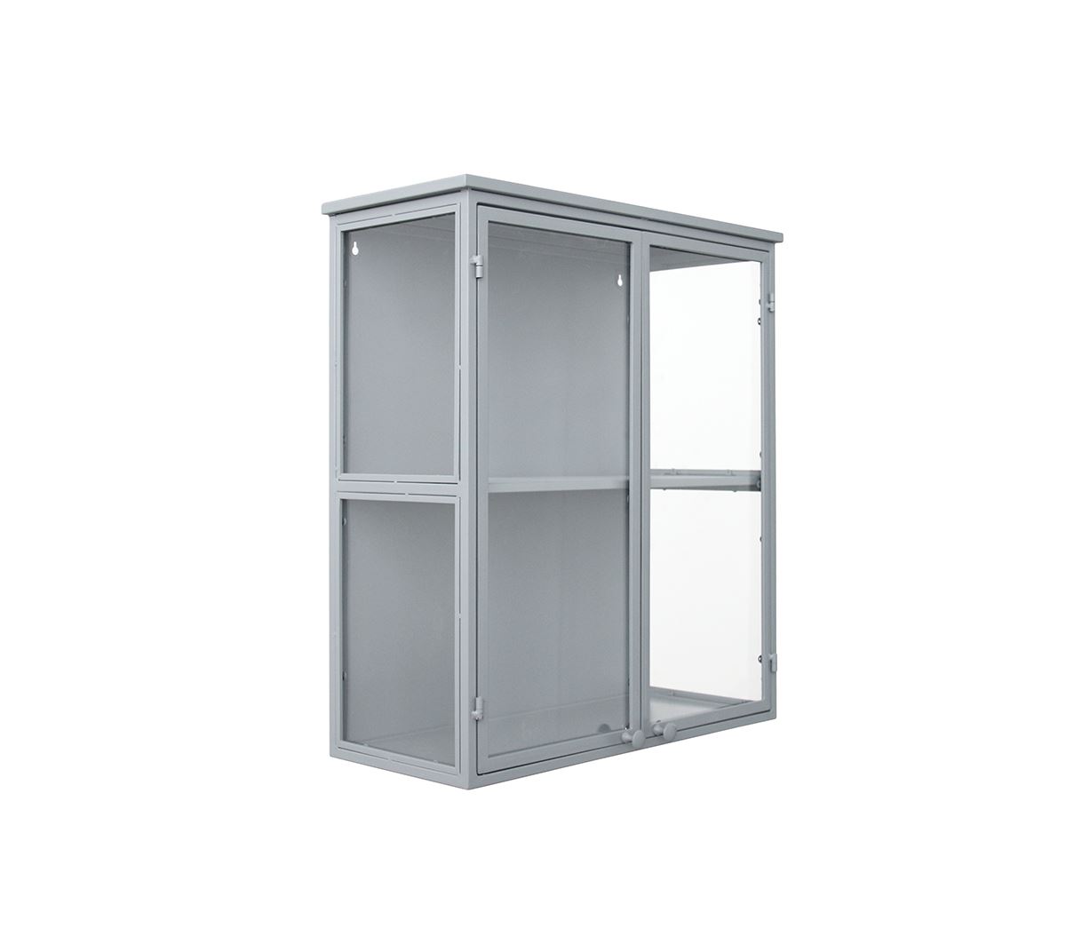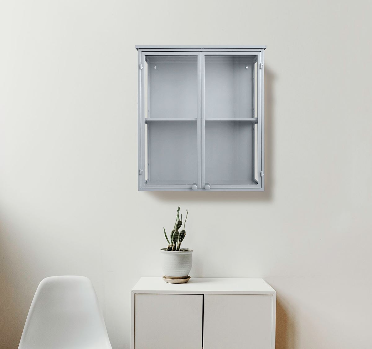 Elegant væghængt vitrineskab i grålakeret jern – en perfekt kombination af funktionalitet og industrielt design. Skabet har et stilrent udtryk med glaslåger og glas i siderne, som giver et let og eksklusivt look, samtidig med at du får et flot udstillingsrum til dine yndlingsting. Den indvendige metalhylde skaber struktur og gør det nemt at organisere glas, porcelæn eller dekorative genstande. Den robuste konstruktion i hærdet glas og jern sikrer lang holdbarhed, mens den grålakerede finish i farven Griffin Grey giver et moderne, afdæmpet udtryk, der passer ind i både klassiske og industrielle indretninger.