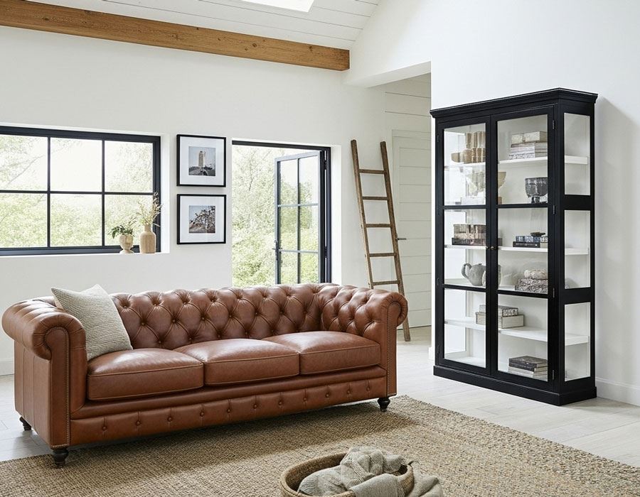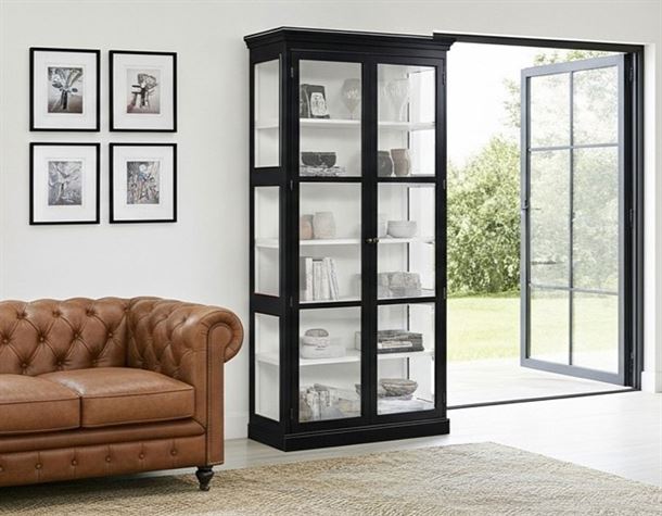 Elegant sort vitrineskab med et klassisk, tidløst look