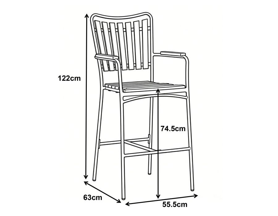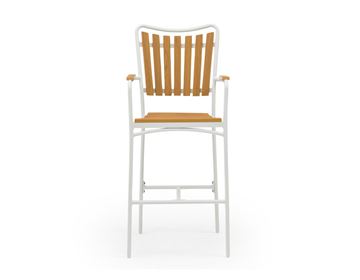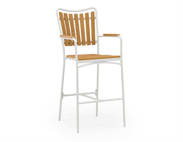 Daneline Adam barstolen kombinerer et stilrent design med materialer, der er skabt til udendørslivet. Stellet i pulverlakeret hvid aluminium holder looket let og moderne, og nonwood i sæde/ryg giver det varme træudtryk – uden besværlig vedligeholdelse. Med høj ryg og armlæn får du god støtte, når du nyder et glas vin eller en hurtig frokost ved barbordet.