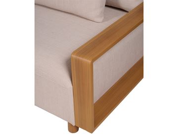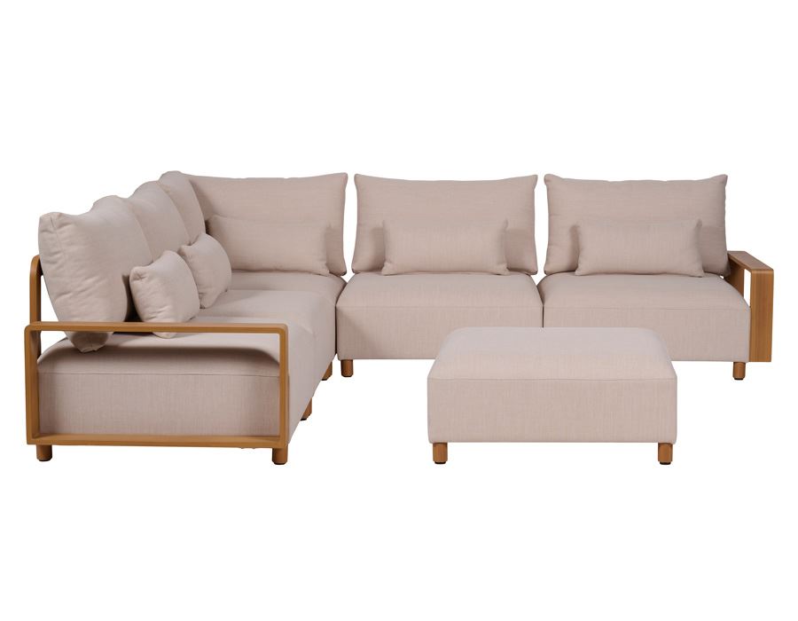 Det slidstærke beige tekstil giver et moderne og roligt udtryk, der passer perfekt ind i enhver udendørs indretning. Den medfølgende ottoman kan bruges som puf, chaiselongforlængelse eller ekstra siddeplads, hvilket gør sættet ekstra praktisk i hverdagen og ideelt, når du får gæster.
