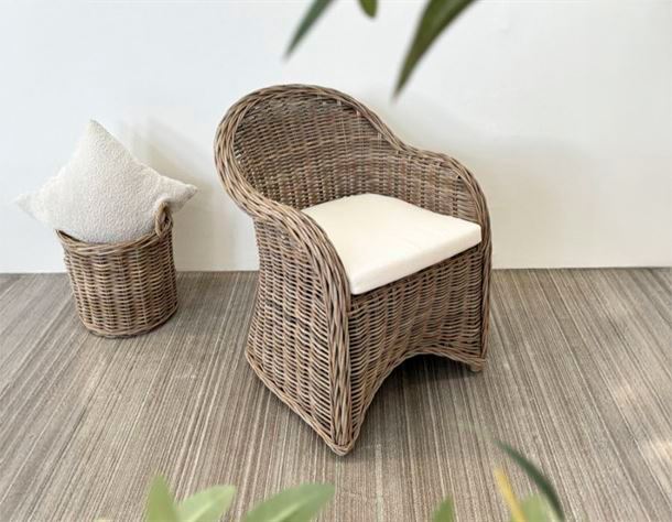 Bring naturens varme og charme ind i hjemmet med denne smukke håndlavede stol i kraftig naturfarvet rattan. Hver stol er flettet med omhu, hvilket giver et autentisk og tidløst udtryk, der passer perfekt til både udestue, orangeri eller den overdækkede terrasse. Den medfølgende hynde i naturfarvet stof understøtter det naturlige look og sikrer samtidig høj siddekomfort.