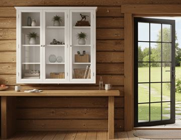 Elegant væghængt vitrineskab – klassisk hvid