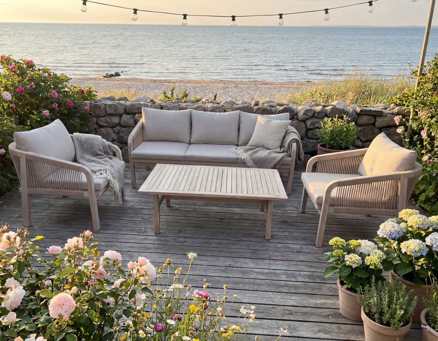 Et loungemiljø der indbyder til ro, nærvær og lange sommerdage
