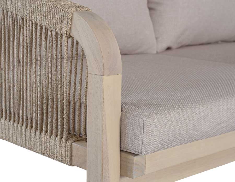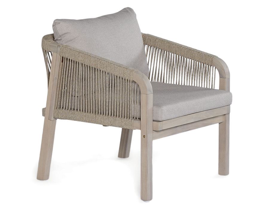 De bløde, afrundede former og de fine rebdetaljer giver sættet et moderne, men samtidig varmt udtryk. Kombinationen af akacietræ og flettet polyesterreb skaber en luftig og stilfuld helhed, der passer perfekt til terrassen, haven eller det overdækkede uderum.