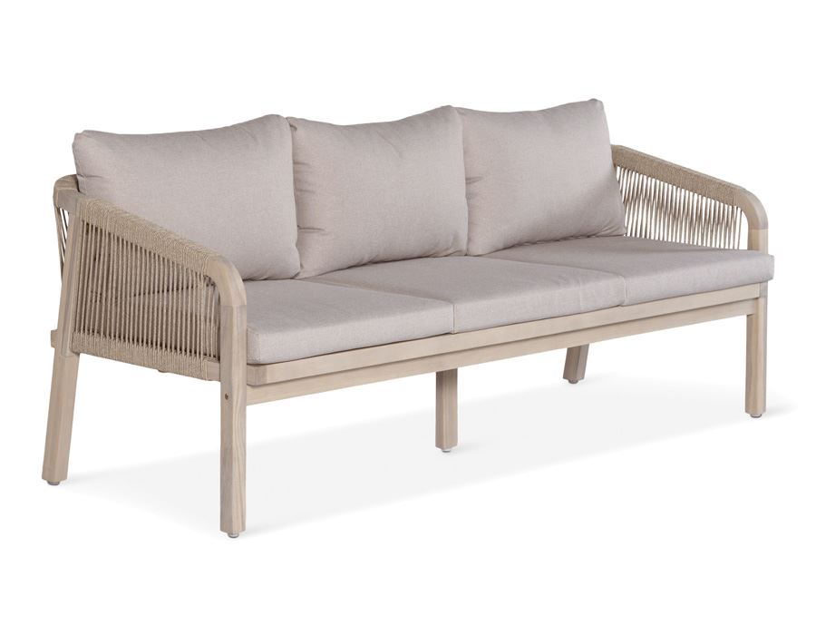 Dette smukke loungesæt skaber rammen om de øjeblikke, hvor tiden får lov at gå lidt langsommere. Med en rummelig 3-personers sofa, to komfortable loungestole og et elegant sofabord får du et harmonisk uderum, der både føles let, indbydende og naturligt.