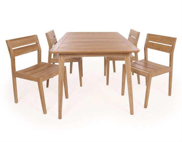 Et stilfuldt havesæt fremstillet i kerneteak af høj kvalitet. Sættet består af et rektangulært Murcia bord og fire matchende Murcia stole, der tilsammen skaber et elegant og harmonisk udtryk i haven eller på terrassen.