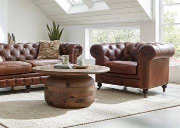 Denne imponerende Chesterfield-lænestol kombinerer tidløs britisk design med luksuriøs komfort. Betrukket med 100% ægte okselæder i farven Newark brown, har stolen et smukt patineret look, der kun bliver flottere med årene. Det dybe, håndlavede knapbetrukne ryglæn og de rullede armlæn giver den ikoniske Chesterfield-stil, mens de elegante messingnitter og de drejede træben med hjul tilfører et eksklusivt touch.