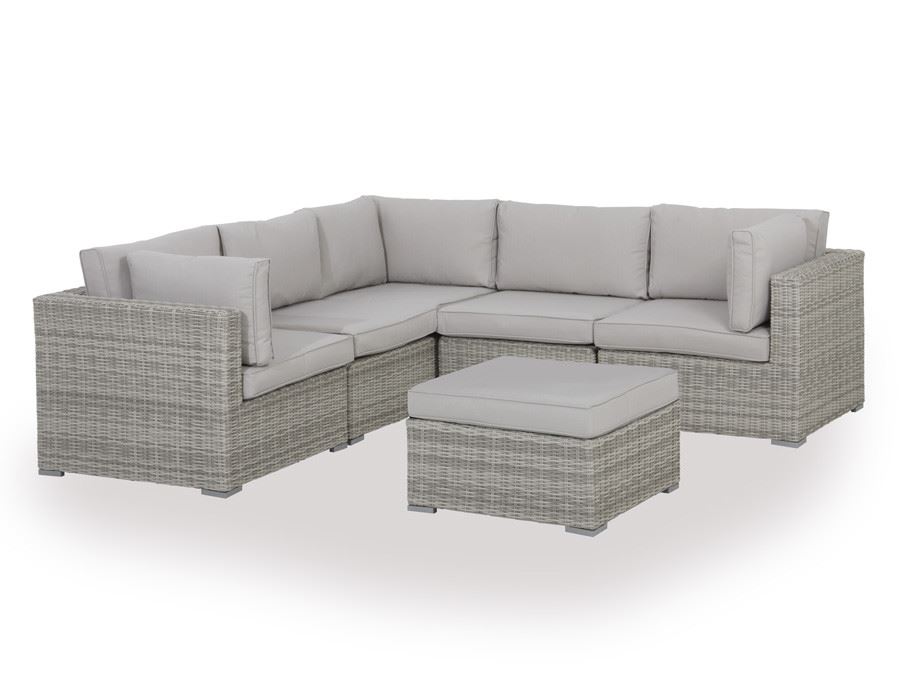 Havemøbelsæt med aluminiumsstel og ekstra kraftig lys grå polyrattan-flet. Det modulopbyggede design giver dig frihed til at sammensætte sofaen præcis efter dine ønsker.