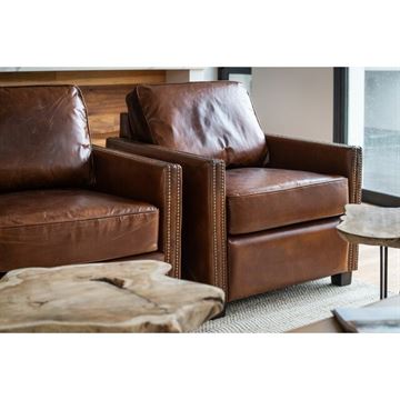 Rupert hvilestol kombinerer tidløst håndværk med luksuriøs komfort. Stolen er betrukket med 100% ægte okselæder i farven Vintage Cigar, fremstillet af førsteklasses læder importeret fra Italien og Sydamerika. Læderet er nænsomt håndbearbejdet og let slebet tilbage for at skabe en smuk, naturlig patina, der giver stolen et autentisk og sofistikeret udtryk.