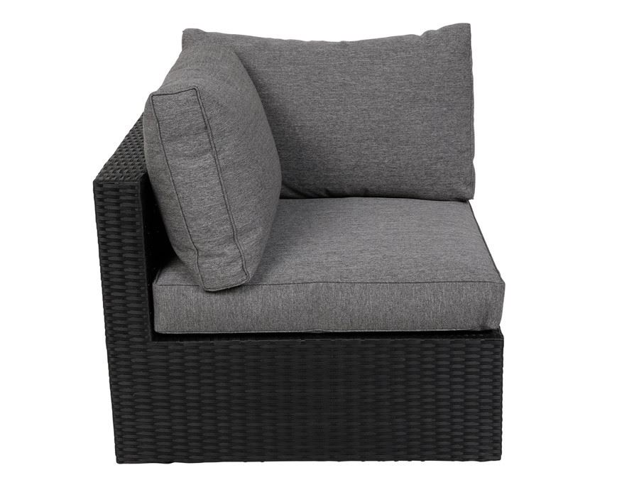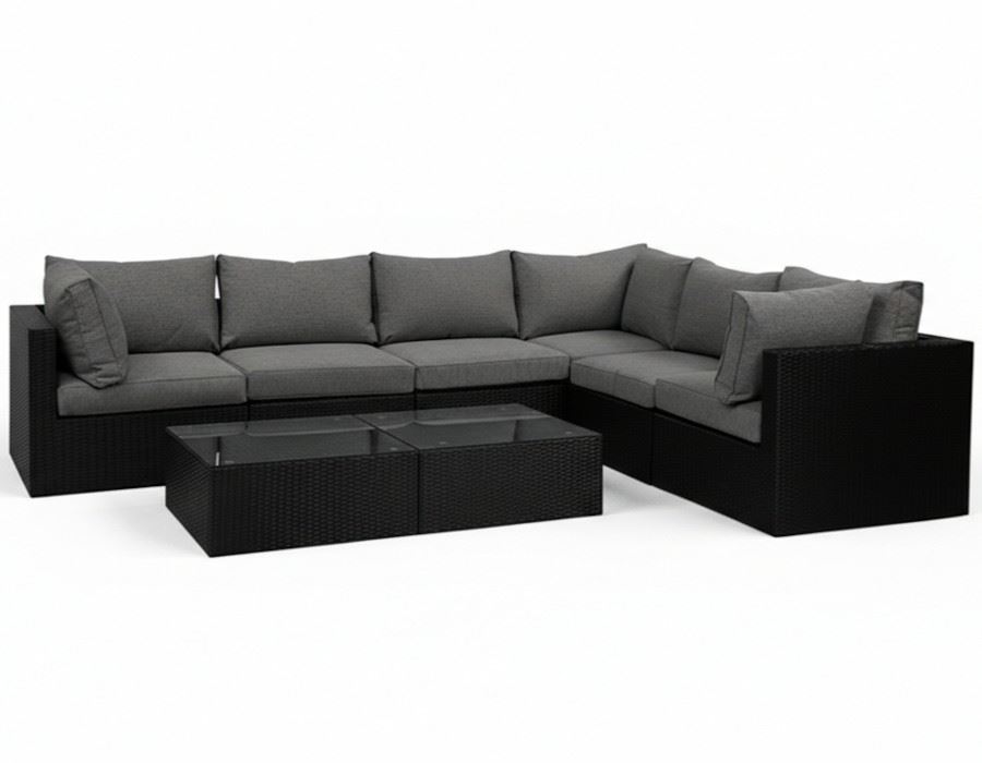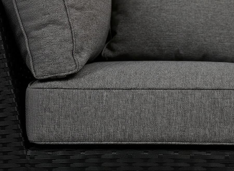 Alle moduler leveres med vandafvisende hynder med TPU-belægning på indersiden af betrækket, hvilket sikrer hurtig tørring og gør sættet velegnet til udendørs brug. Modulerne samles nemt med de medfølgende beslag, så sofaen står stabilt og sikkert.