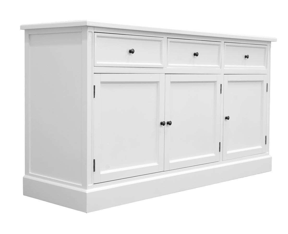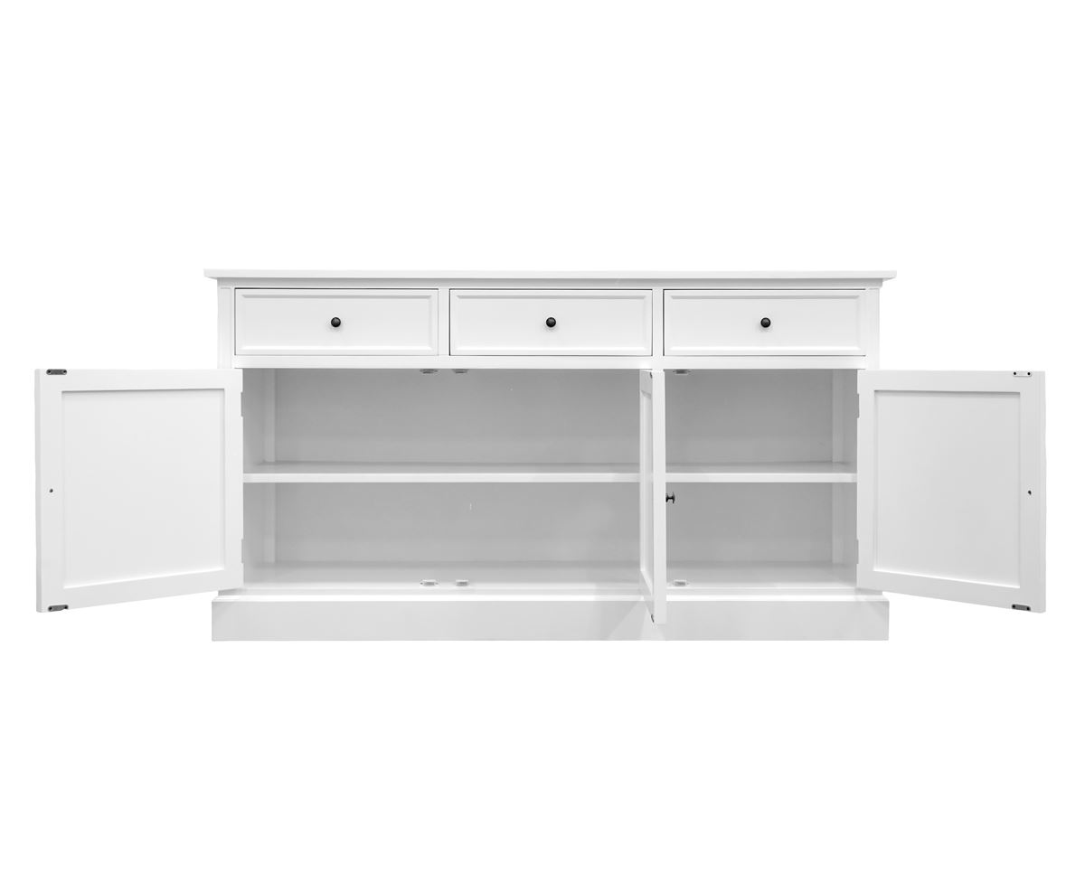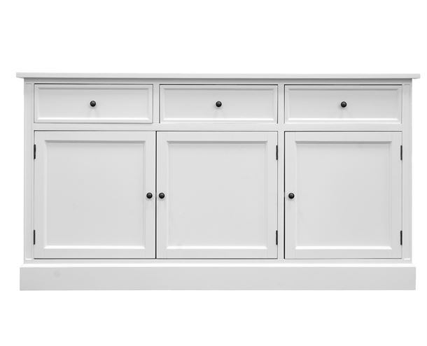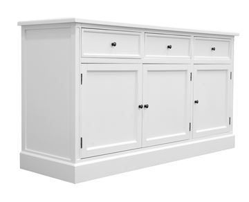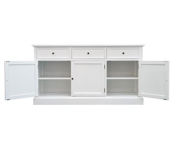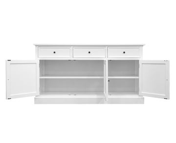 Med 3 rummelige låger og 3 praktiske skuffer får du rigeligt med plads til opbevaring – ideelt til både service, tekstiler og hverdagens småting, der fortjener en fast plads. Indretningen er gennemtænkt, så du får både overblik og fleksibilitet i hverdagen. Skænkens tidløse design gør den nem at integrere i både moderne og klassiske hjem. Den står smukt i stuen, spisestuen eller entreen og tilfører rummet et lyst, roligt og hyggeligt udtryk.