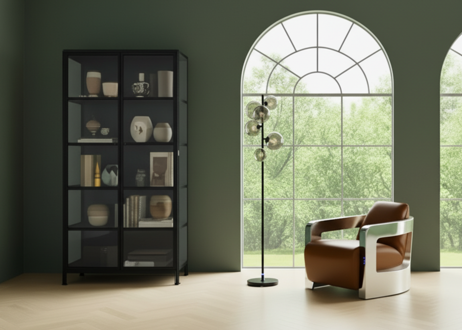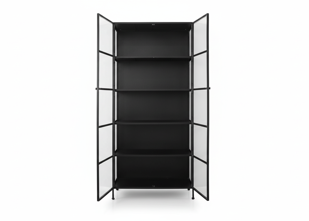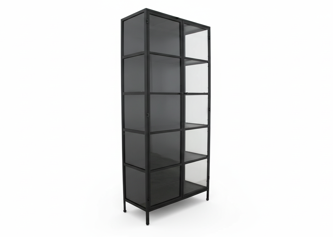 Råt & stilfuldt vitrineskab i sort jern – New Yorker vibes til dit hjem.