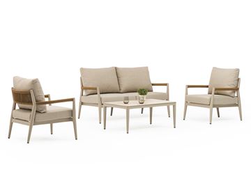 Sættet består af en 2-personers sofa, to loungestole og et sofabord med slidstærk keramisk bordplade – perfekt til både morgenkaffe og lange sommeraftener. Hynderne følger naturligt med og er ekstra tykke, så du får en blød loungefornemmelse fra første sekund. Og fordi hynderne er vandafvisende, er Svendborg skabt til udelivet, hvor komfort og praktisk hverdag skal gå hånd i hånd.