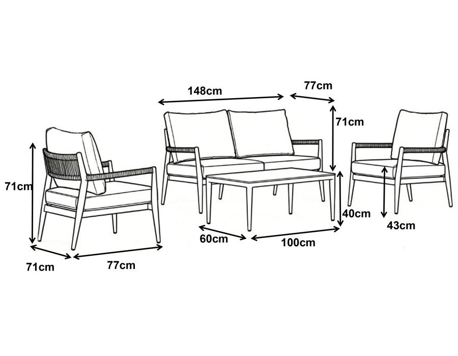 Sofa: Bredde: 148 cm | Dybde: 77 cm | Højde: 71 cm | Siddehøjde: 43 cm